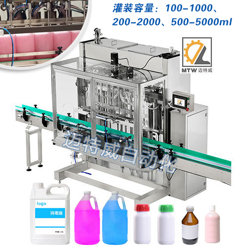 直線灌裝機是一種用于自動化生產線中液體灌裝的設備。它通常由多個部分組成,包括貯液罐、電控系統、灌裝頭、輸送帶等。灌裝機的主要工作原理是使用電動或氣動控制系統控制灌裝頭的運動和液體的流量,將液體從貯液罐中輸送到指定的容器或產品中。